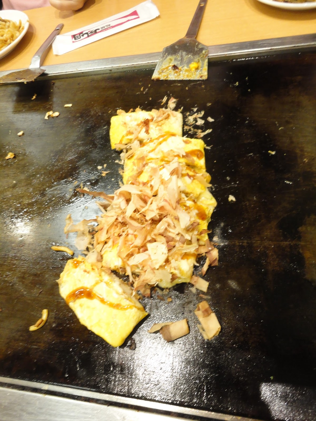 終於便來到了有名的大阪燒店鶴橋風月,來大阪當然要吃一次最地道的大阪燒呢!可惜就是不該在極餓的狀態下光顧的,因為要看著還沒燒好的美食十多分鐘不能吃,實在是一件很痛苦的事呢!