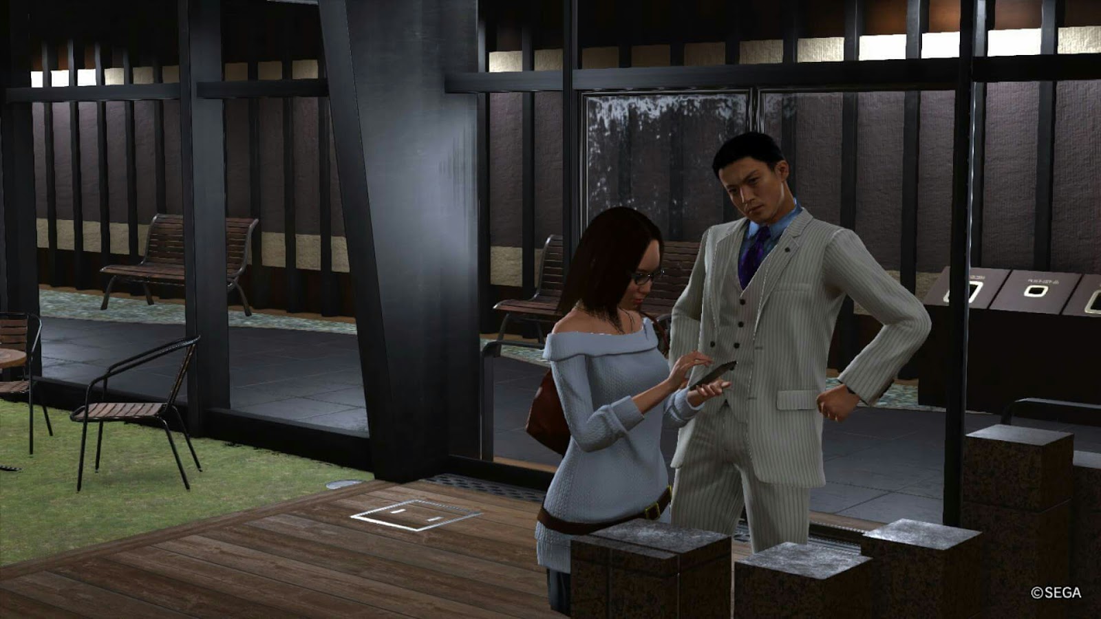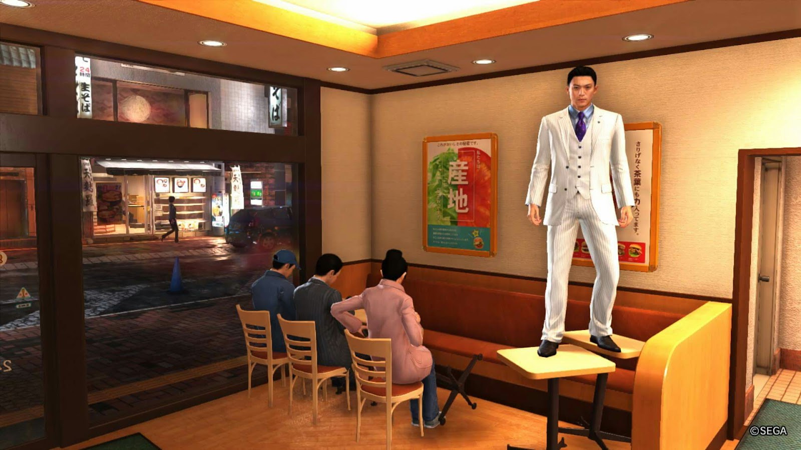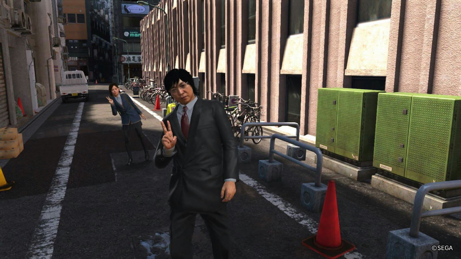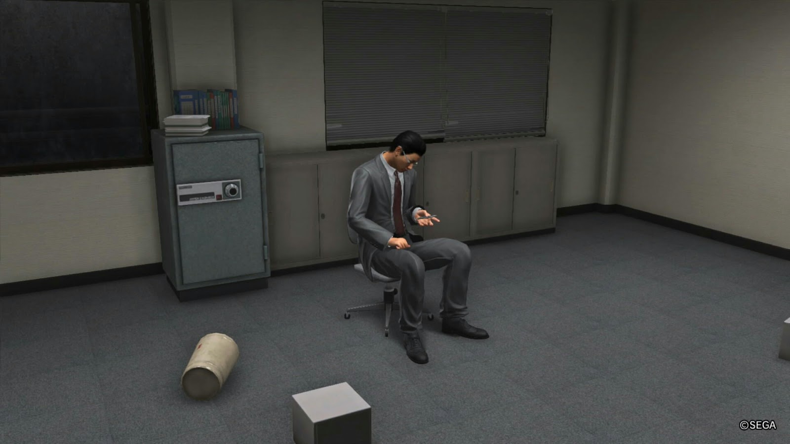 遊戲中能進入某些公司的辦公室中,甚至大肆破壞亦可,力量如神的桐生只需奮力地跑就能破壞各種傢俱了,這位小哥的辦工室甚麼都沒有了仍能淡定地獨坐著滑手機,該說他是專業還是過度投入呢...