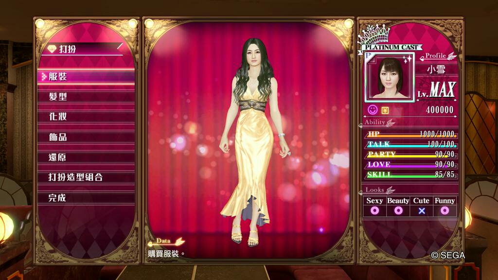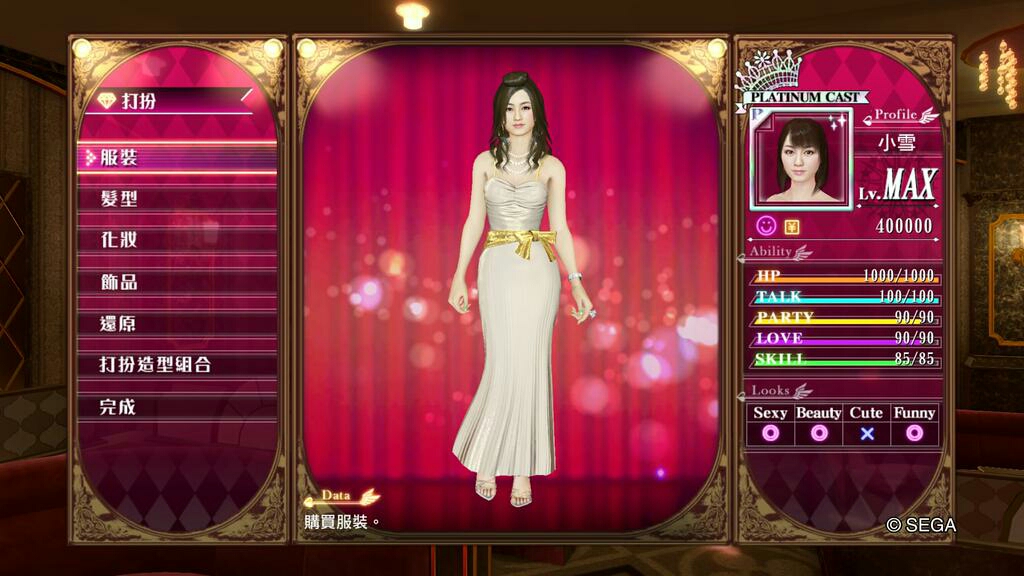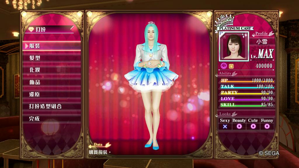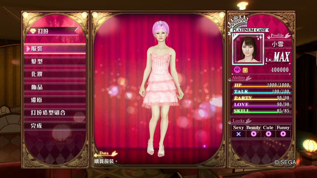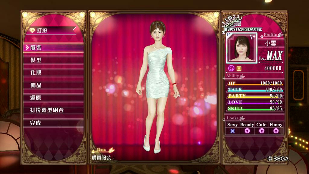 人中之龍0 誓約的場所 風化島之小雪裝扮數值