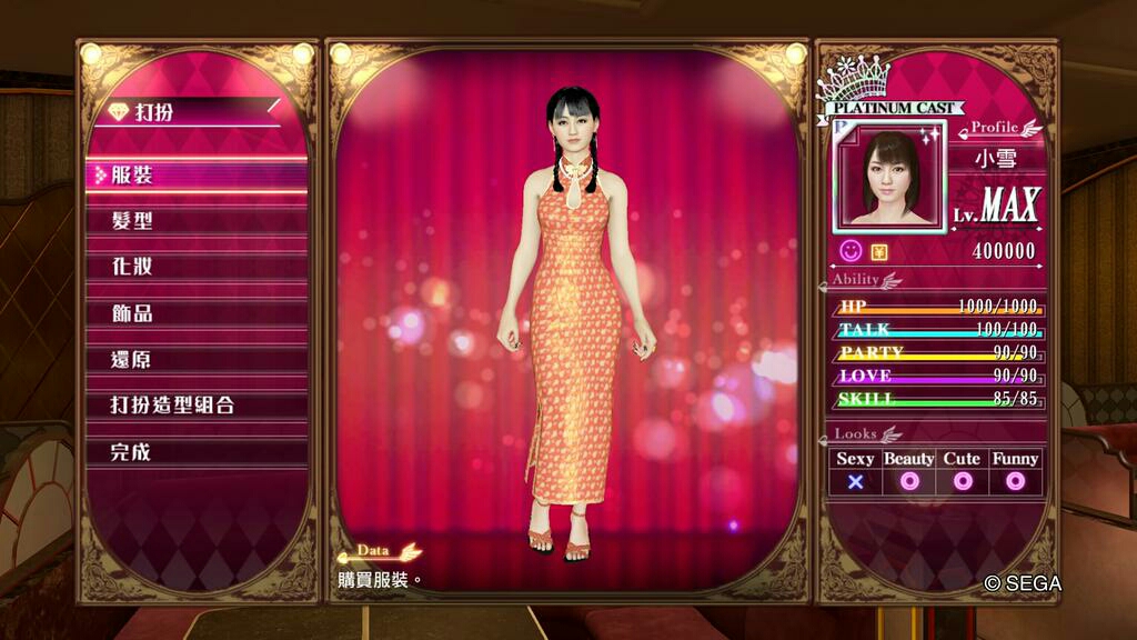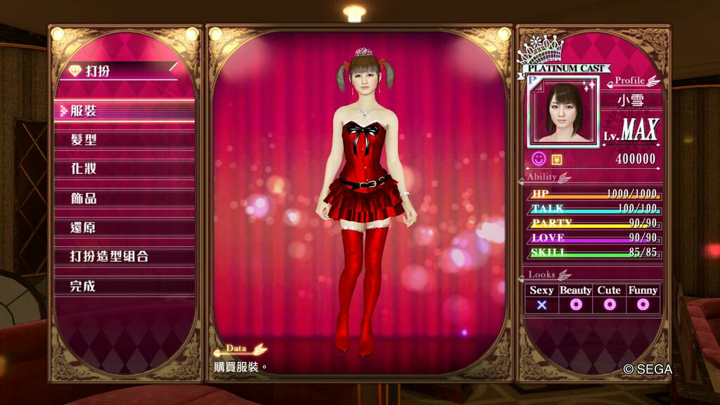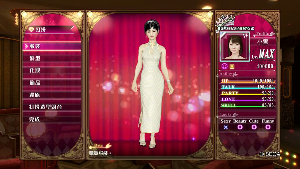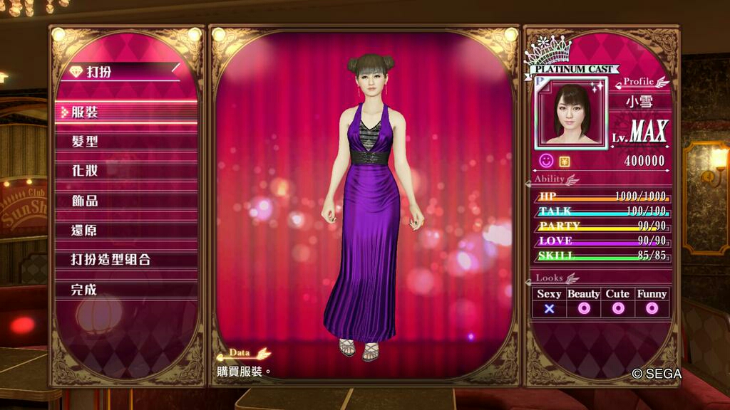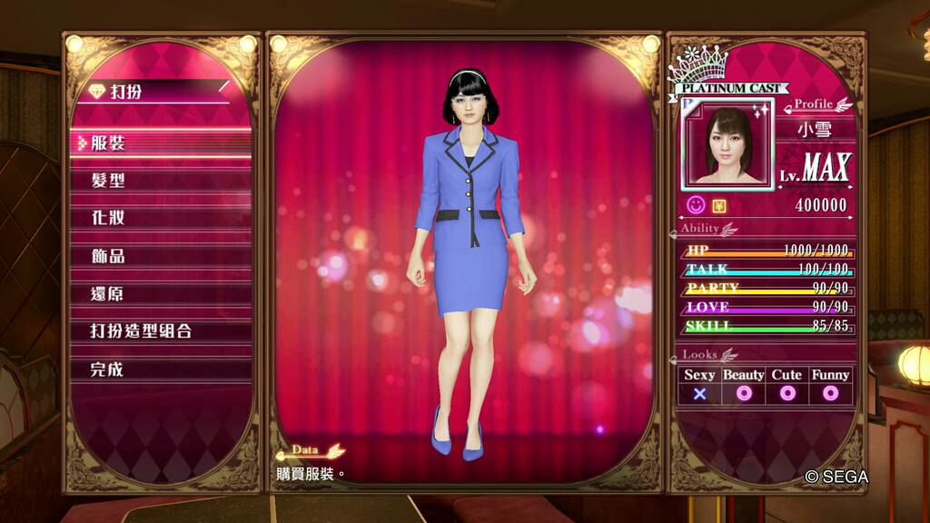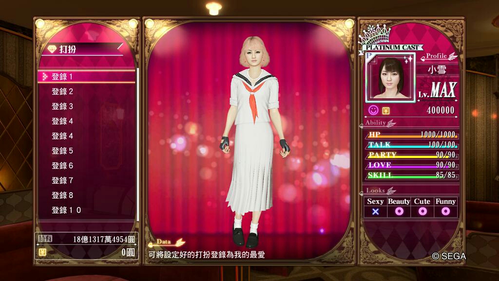 人中之龍0 誓約的場所 風化島之小雪裝扮數值