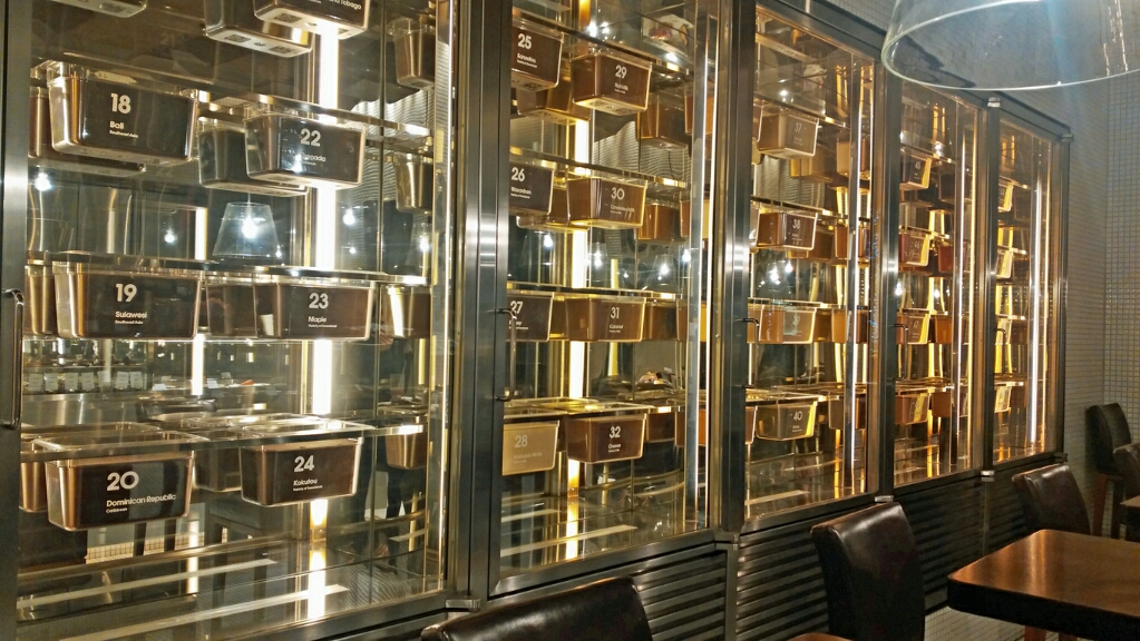 除了Cafe能品嚐的菜式外,此處亦售賣巧克力片,共56種口味,在Cafe牆上掛著一箱箱的「實物」作介紹,非常獨特的設計。