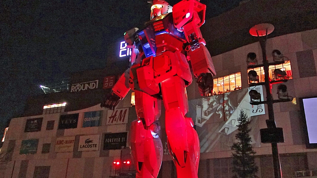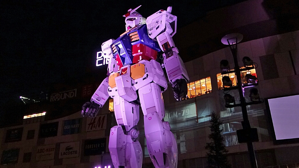 從Gundam Cafe出來以後,Gundam終於亮起燈來,拍照又是少不了!