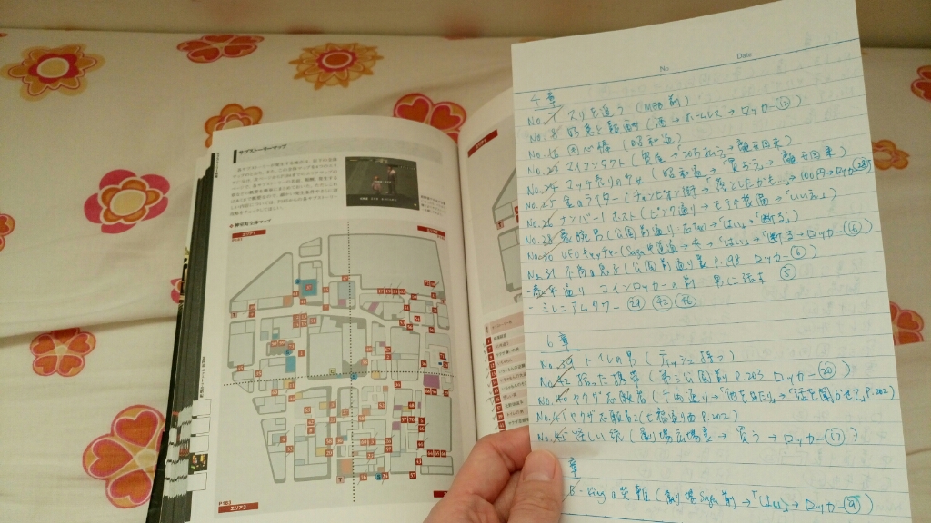 由於當年的系統簡單,破關後的選擇不多,沒有究極鬥取而代之的是破關後的battle review,就是以特定的戰鬥達成某個分數,相對究極鬥技來說簡單得多。至於破關後能自由玩的並不是漫遊模式,而是一個叫作adventure review的,能力值不會給繼承,全部變回lv1,是一個單純用來遊玩支線和小遊戲的模式,所以為了桐生的能力值著想,必定會想在主線期間就完成各種支線,由於初代支線必需在指定時間觸發,錯過了就沒有,此時攻略本就是絕對不能少了,當年我是在Amazon網購付了高昂運費直接寄到家中,然後每天拿著看努力鑽研破關,看回這本做了各種筆記的攻略本,真佩服自己當年竟然如此努力過!